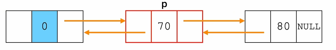 Node * p = front->next; front->next = p->next; if(p->next != NULL){ p->next->prev = front; }